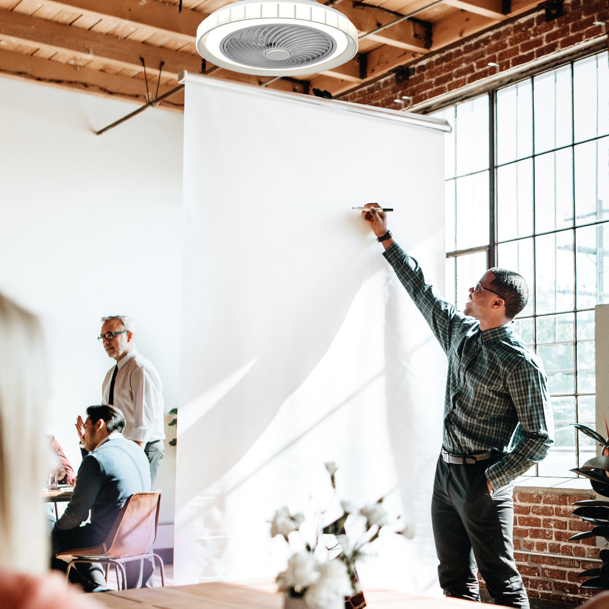 Perfecto para oficinas, salas, dormitorios o terrazas techadas donde se desea una ventilación silenciosa, iluminación potente y control inteligente desde cualquier dispositivo.