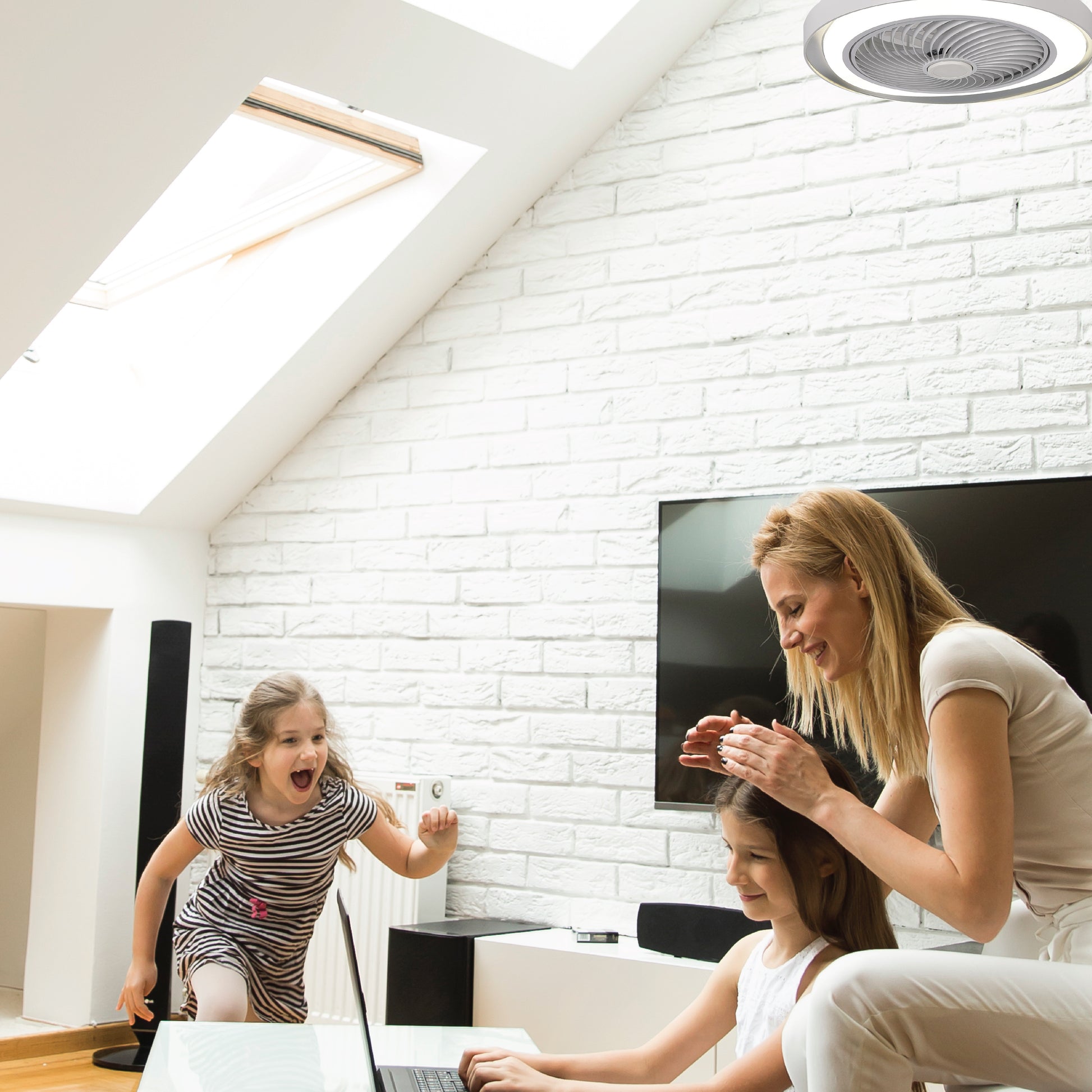 Perfecto para dormitorios, salas de estar, oficinas o terrazas techadas donde se desee una ventilación eficiente, iluminación ajustable y control inteligente.